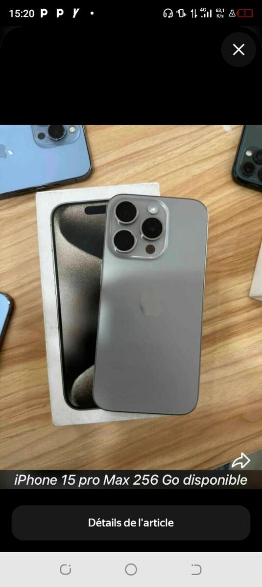 Découvrez l'iPhone 15 Pro Max 256 Go, un smartphone haut de gamme d'Apple. Profitez d'une performance optimale avec 256 Go de stockage et d'une qualité d'appareil photo exceptionnelle. Convient aux utilisateurs exigeants qui recherchent une expérience mobile fluide et puissante.