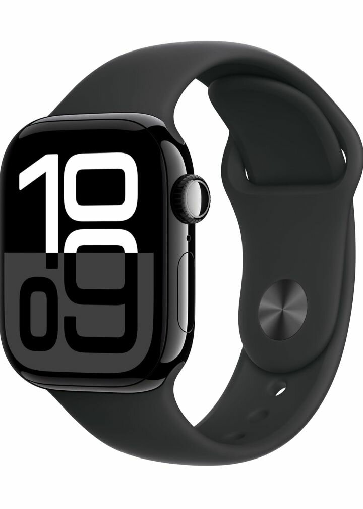 Montre connectée avec boîtier en aluminium noir de Jais et bracelet sport noir (M/L). Suivi de l'activité physique,app ECG, écran Retina toujours activé.