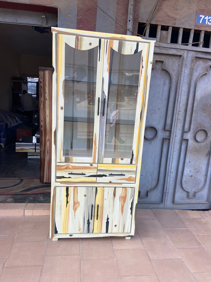 Transformez votre espace avec cet Argentier en bois peint, une fabrication locale.de Hauteur 1m86, finition élégante, robuste et raffiné pour sublimer votre intérieur.