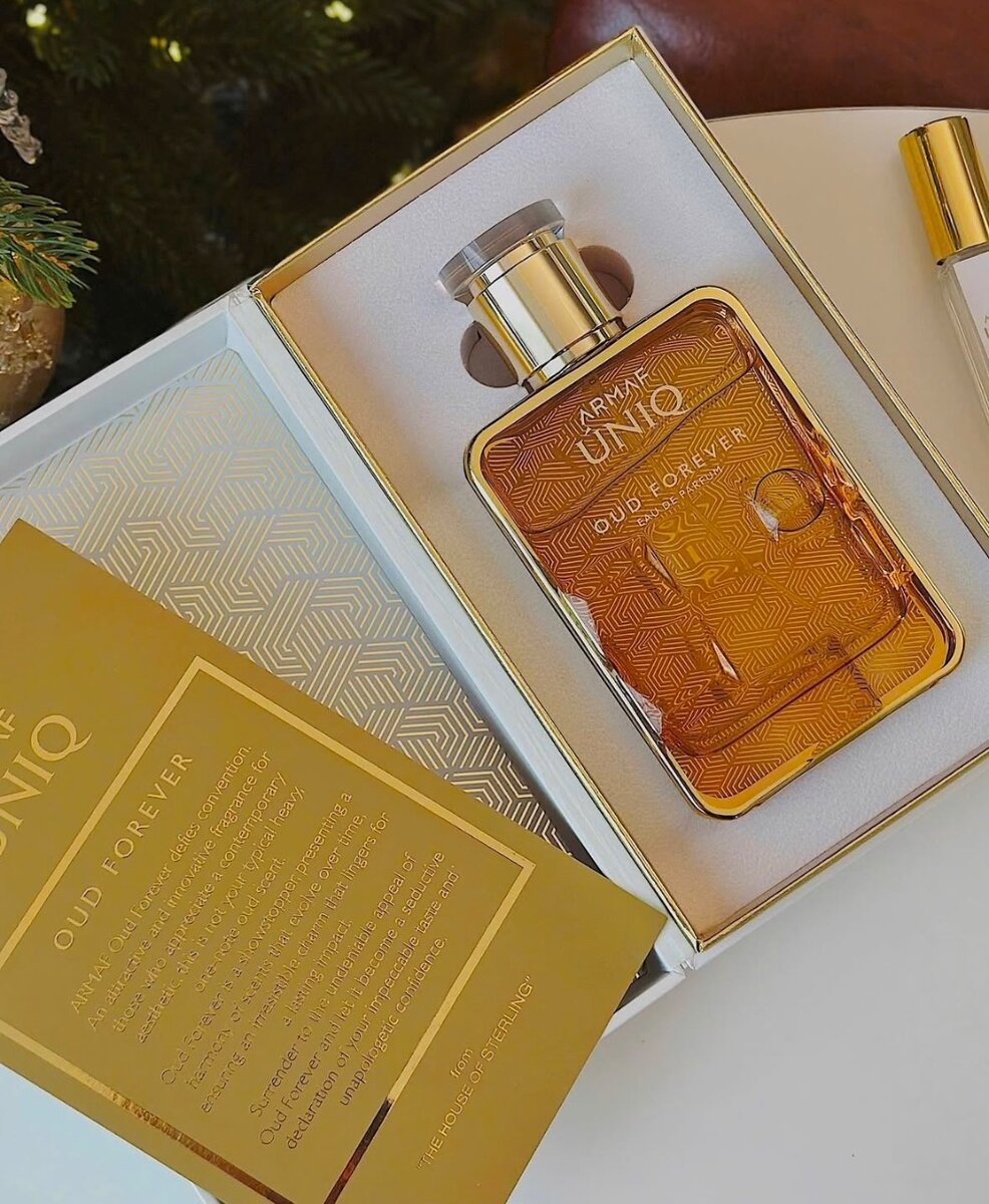 Discover ARMA Uniq Oud Forever Eau De Parfum 100ml; a captivating blend of Pink Pepper, Bergamot, Cardamom, Saffron, leading to elegant middle notes of Cypriol, Osmanthus, Jasmin, and finishing with a warm balance of Patchouli, Cashmeran, Ambroxan, Ambrocenide.