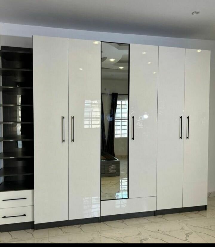 Découvrez cette armoire élégante et fonctionnelle, parfaite pour votre chambre ou dressing. Avec sa finition blanche brillante et son miroir intégré, elle offre un espace de rangement optimal tout en ajoutant une touche de modernité à votre intérieur.