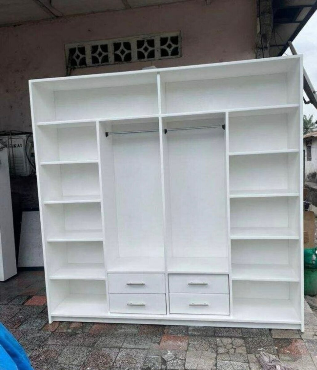 Découvrez ce dressing moderne et spacieux, parfait pour organiser vos vêtements et accessoires. Fabriqué avec des matériaux de haute qualité, il offre un grand espace de rangement avec étagères, tiroirs et penderie.