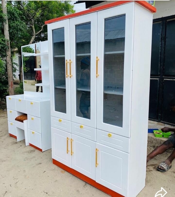 Découvrez cette superbe armoire dressing moderne avec portes vitrées et finition en bois. Idéale pour organiser votre garde-robe avec style, elle offre un espace de rangement optimal pour vos vêtements et accessoires.