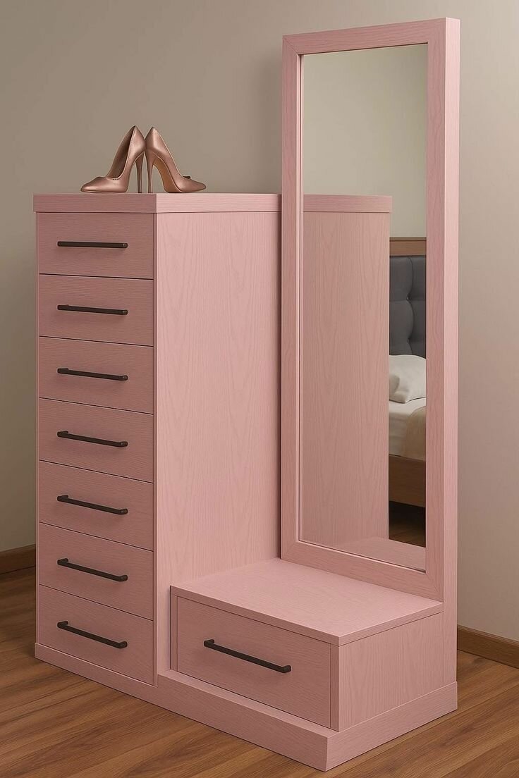 Armoire dressing rose avec miroir
