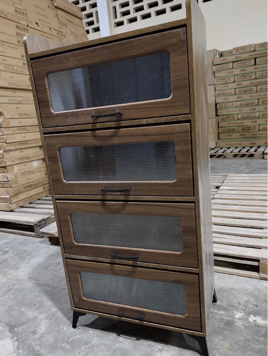 Optimisez votre espace avec cette armoire moderne à 4 tiroirs en bois. Idéale pour organiser vêtements ou accessoires, elle s'intègre parfaitement à tout intérieur grâce à son design élégant et ses finitions en verre texturé. Robuste et stylée, elle est le choix parfait pour un rangement chic et pratique.