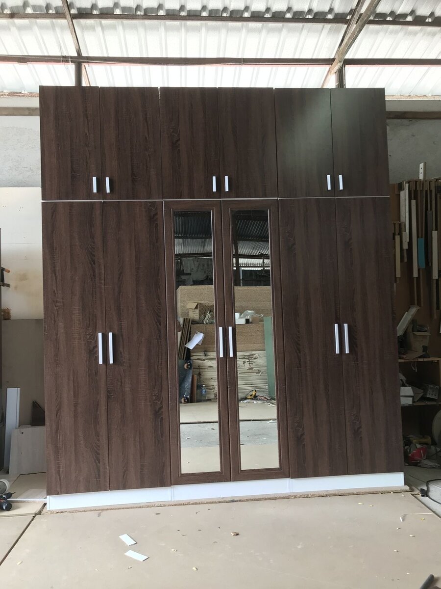 Découvrez cette armoire spacieuse avec finitions en bois moderne et élégants miroirs centraux. Idéale pour organiser votre chambre, elle offre un espace de rangement optimisé grâce à ses tiroirs et compartiments. Parfaite pour apporter une touche contemporaine à votre intérieur.