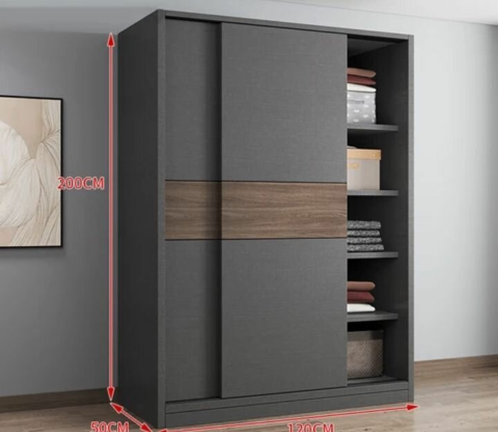 Équipez votre chambre avec cette armoire moderne gris foncé, dotée de portes coulissantes et d'étagères intégrées. Design élégant et fonctionnalité pour un rangement optimal.