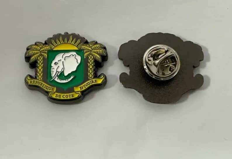 Rehaussez votre collection avec cet élégant insigne représentant l'éléphant emblématique de la Côte d'Ivoire. Parfait pour les amateurs de pins et les passionnés de culture africaine, cet accessoire se fixe facilement sur vos vêtements, sacs ou chapeaux. Son design durable et son attache solide garantissent une utilisation pratique et esthétique.