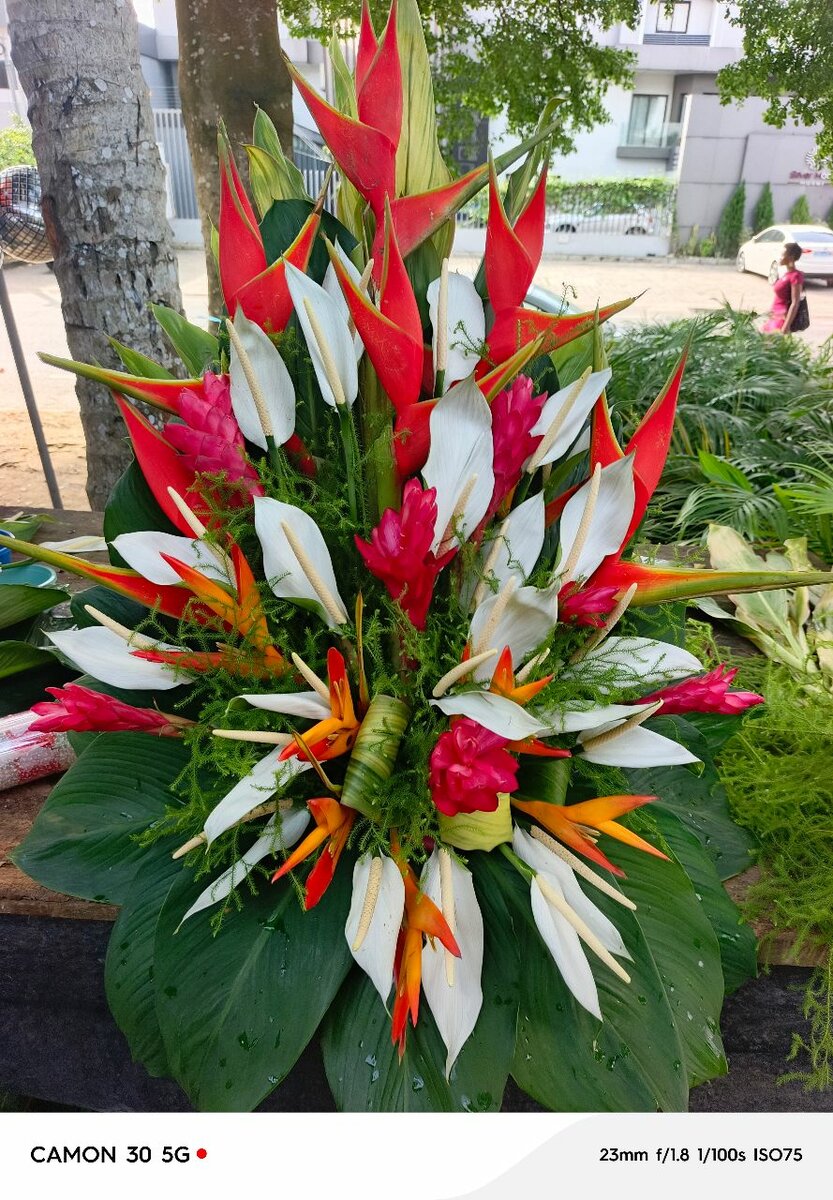 Ce magnifique arrangement de fleurs exotiques est parfait pour ajouter une touche vibrante à n'importe quel espace. Composé de fleurs aux couleurs vives et variées, il apporte fraîcheur et élégance. Idéal pour la décoration d'intérieur ou comme cadeau unique.