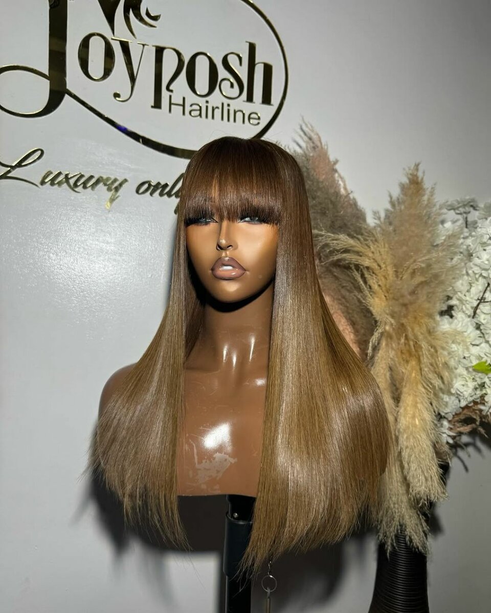- Movement: The hair hangs straight down from the head, with minimal movement or bounce