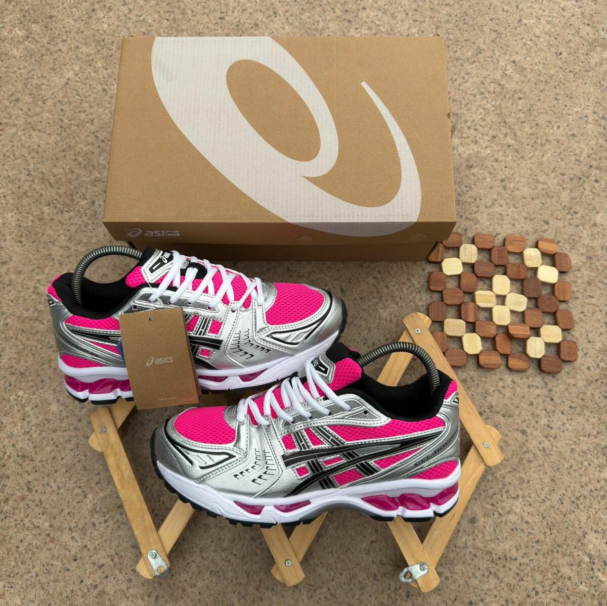 Stylish and comfortable Asics running shoes in vibrant pink and silver. Perfect for athletes and casual runners, offering great support and cushioning. Ideal for everyday wear and outdoor activities.