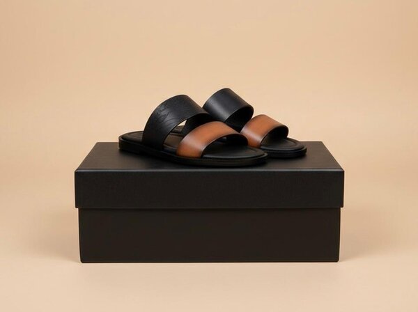 Sandales plates en cuir noir et marron