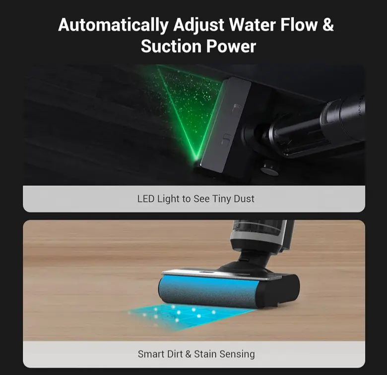EZVIZ RH2 Aspirateur Eau et Poussière sans Fil Intelligents pour Sols Durs, Auto-Nettoyage, Séchage àl'air Chaud, Nettoyage des Bords, Longue Autonomie, Messages Vocaux et Affichage LED