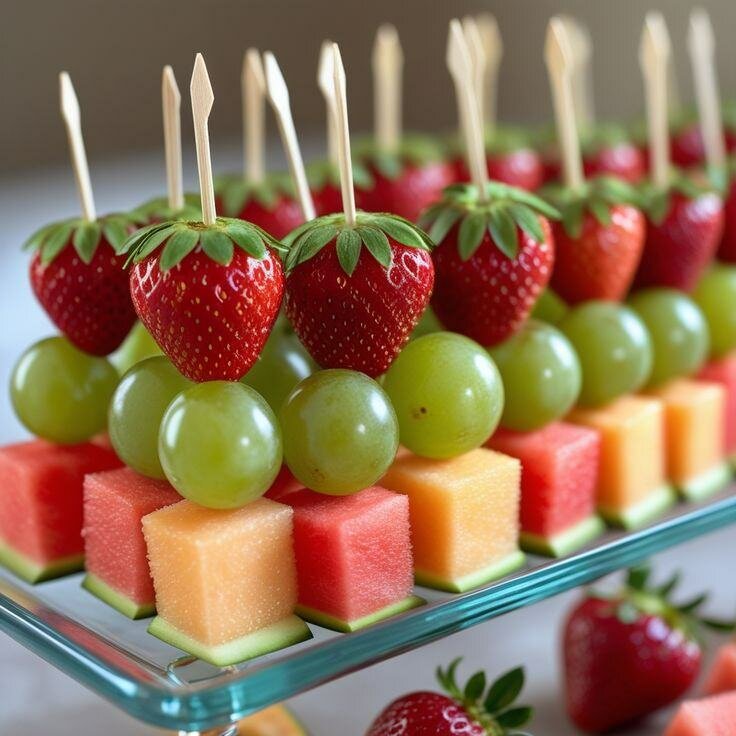 Savourez des moments de fraîcheur avec nos brochettes de fruits exotiques, parfaites pour des fêtes ou un goûter sain. Alliant fraises juteuses, raisins croquants, et cubes de melon doux, chaque brochette est une explosion de saveurs. Idéales pour les événements en plein air ou une collation équilibrée à tout moment de la journée. Un choix délicieux et coloré pour ravir vos invités.