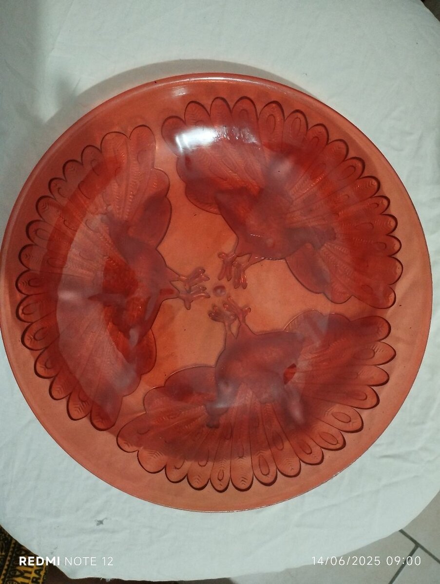 Magnifique assiette en verre rouge, ornée de motifs d'oiseaux artistiques. Idéale pour embellir votre table ou comme pièce décorative. Parfaite pour les amateurs d'art de la table recherchant une touche unique et élégante.
