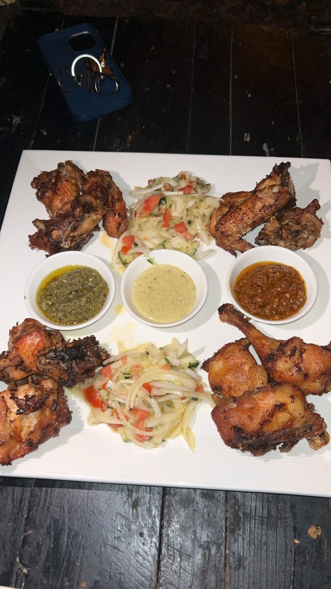 Dégustez notre délicieux poulet grillé accompagné de sauces exotiques et d'une salade croquante. Parfait pour un repas convivial ou un dîner spécial. Succulent et plein de saveurs!