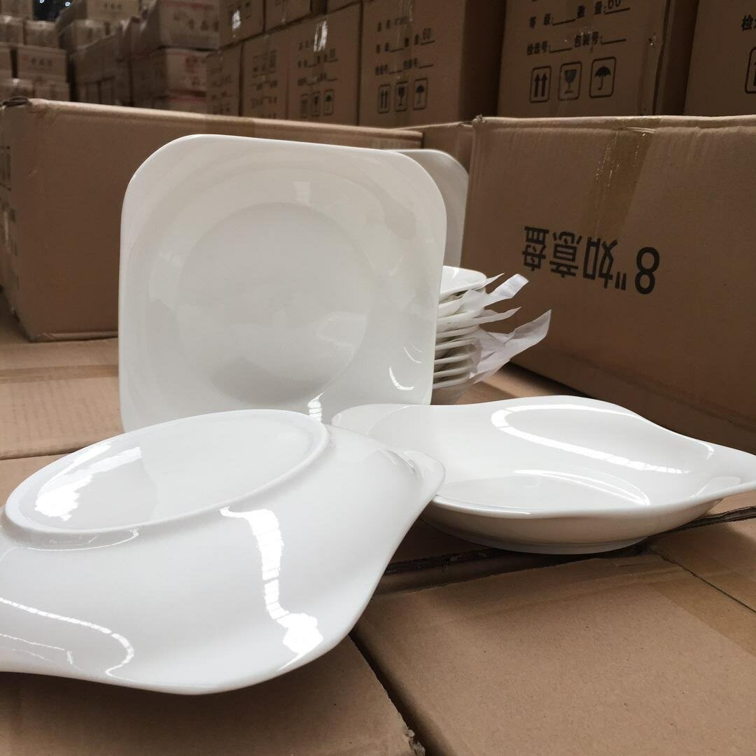 Assiettes plates en céramique blanche