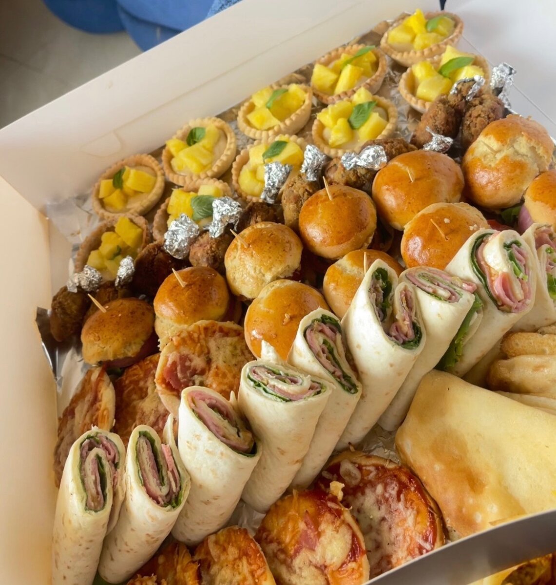 Découvrez notre assortiment irrésistible de mini sandwichs, tartes aux fruits et bouchées savoureuses, idéal pour les événements festifs. Une combinaison parfaite de fraîcheur et de goût, prête à ravir vos invités lors de vos réceptions.