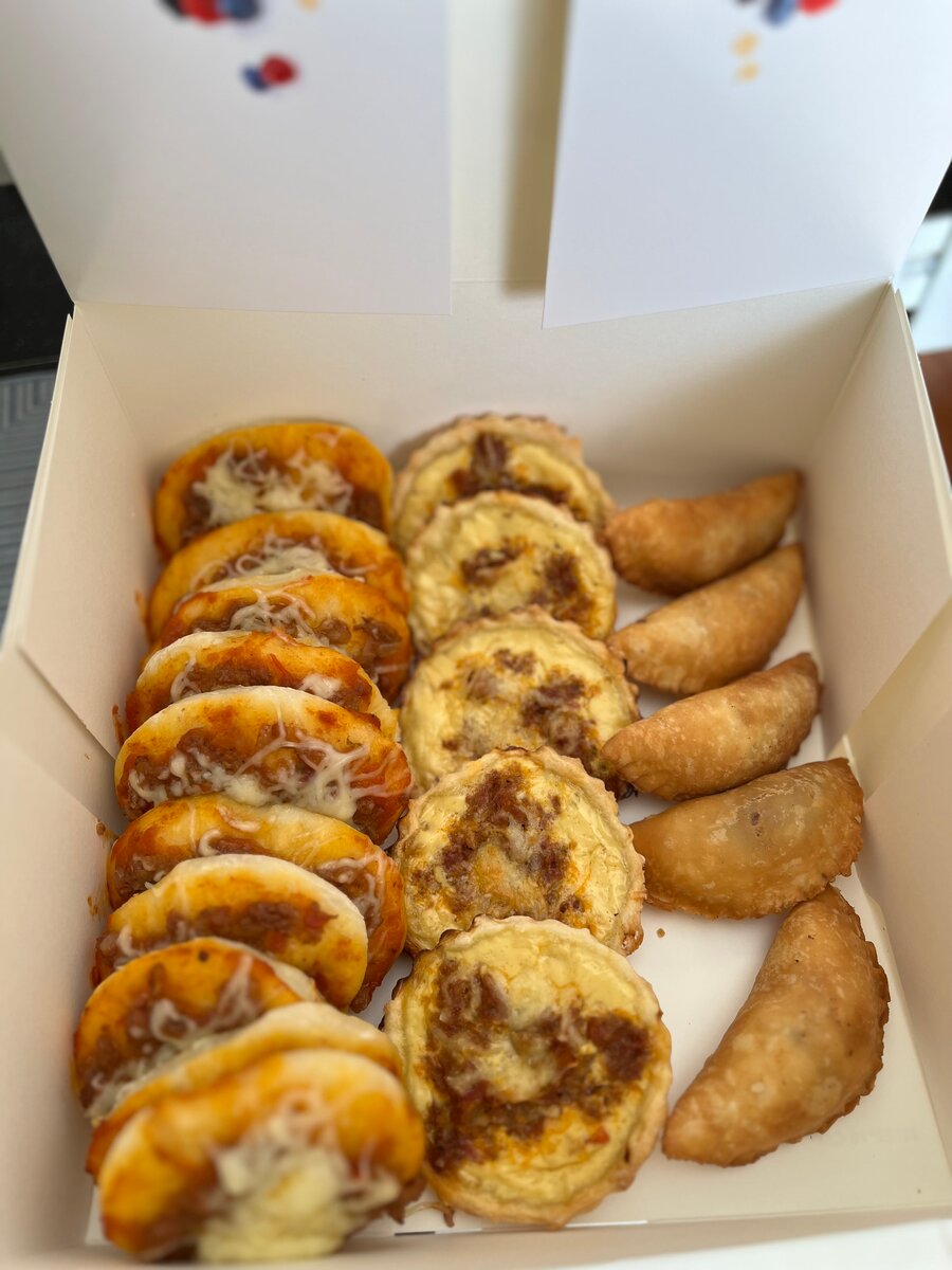 Découvrez notre délicieux assortiment de mini-pizzas et chaussons savoureux. Idéal pour vos apéros ou petits événements.