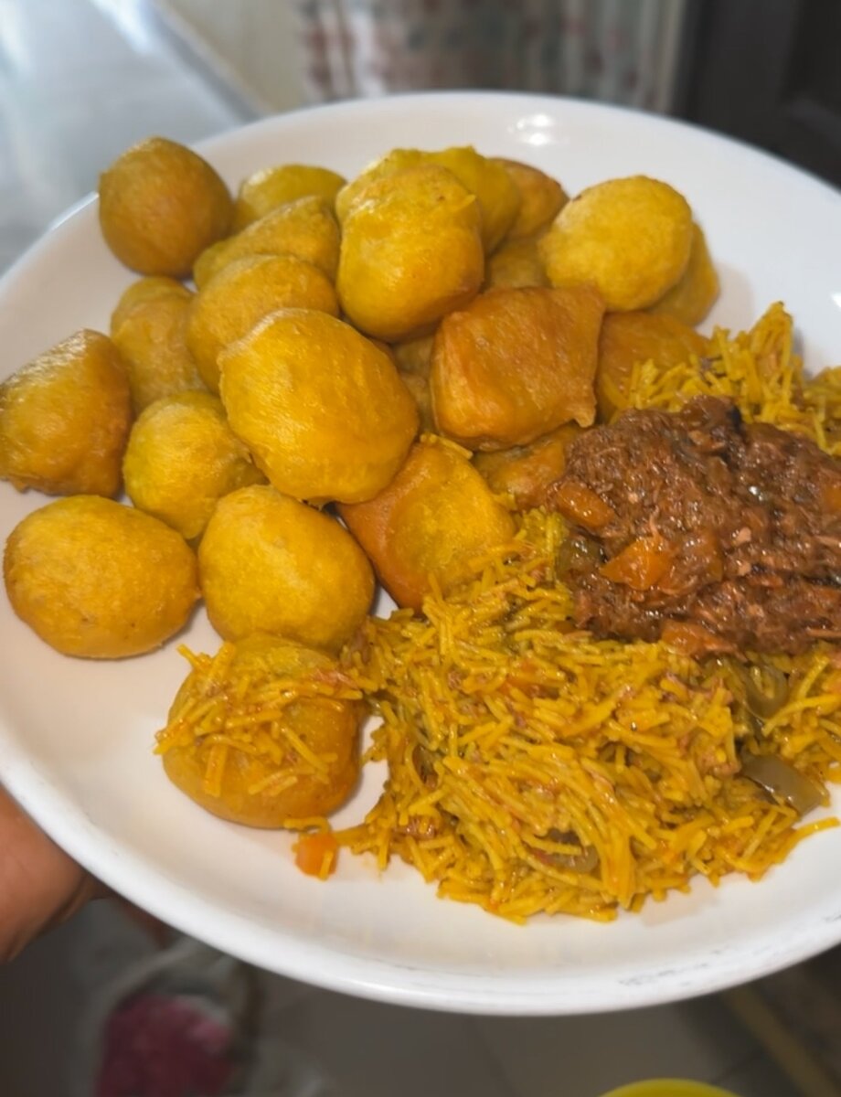 Découvrez un plat africain savoureux comprenant beignets croustillants et vermicelles épicés. Parfait pour des repas conviviaux et gourmands. Apportez une touche d'exotisme à votre table avec ces saveurs uniques. Idéal pour les amateurs de cuisine du monde.