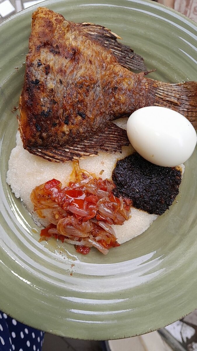 Atoupkou poisson frit avec notre délicieux piment noir.
