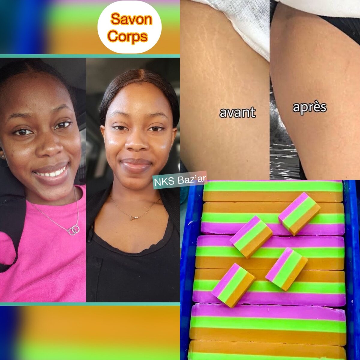 Ta peau est sombre tu as Vergetures tu as quinto, tu as les tâches sur le corps, viens prendre ton savon 3 couleurs dosé qui va te glow et faire ressortira ta beauté naturelle