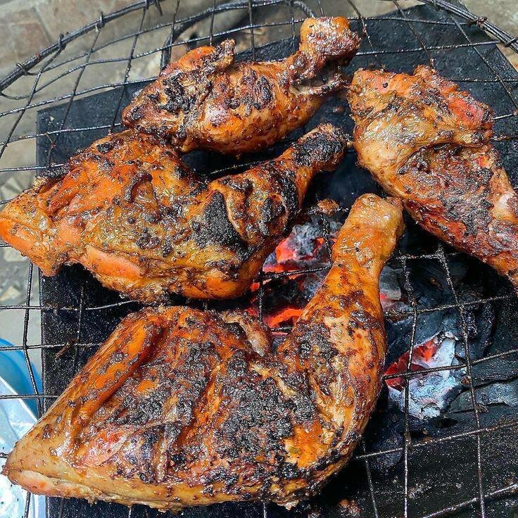 1/2 Poulet Braisé Assaisonné Aux Épices Du Cameroun + Attiéké LES PLATS SONT DISPONIBLES JUSQU'À 21HEURES