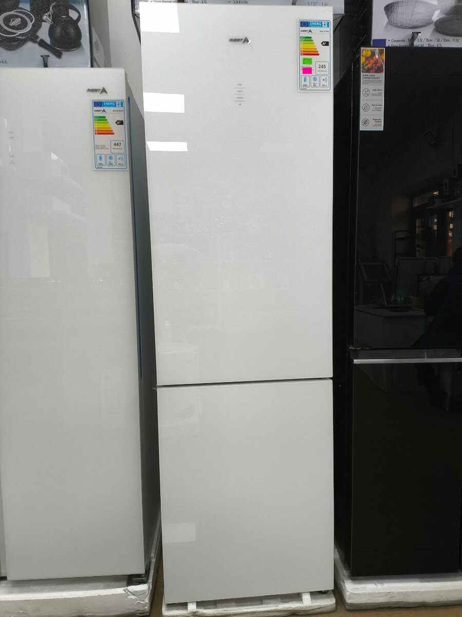 Холодильник Avest белого цвета, дверь с наруже покрыта орг стеклом. Холодильная камера на 260л, а морозильная камера 96л. Размер холодильника: В-200, Ш-60, Г-63