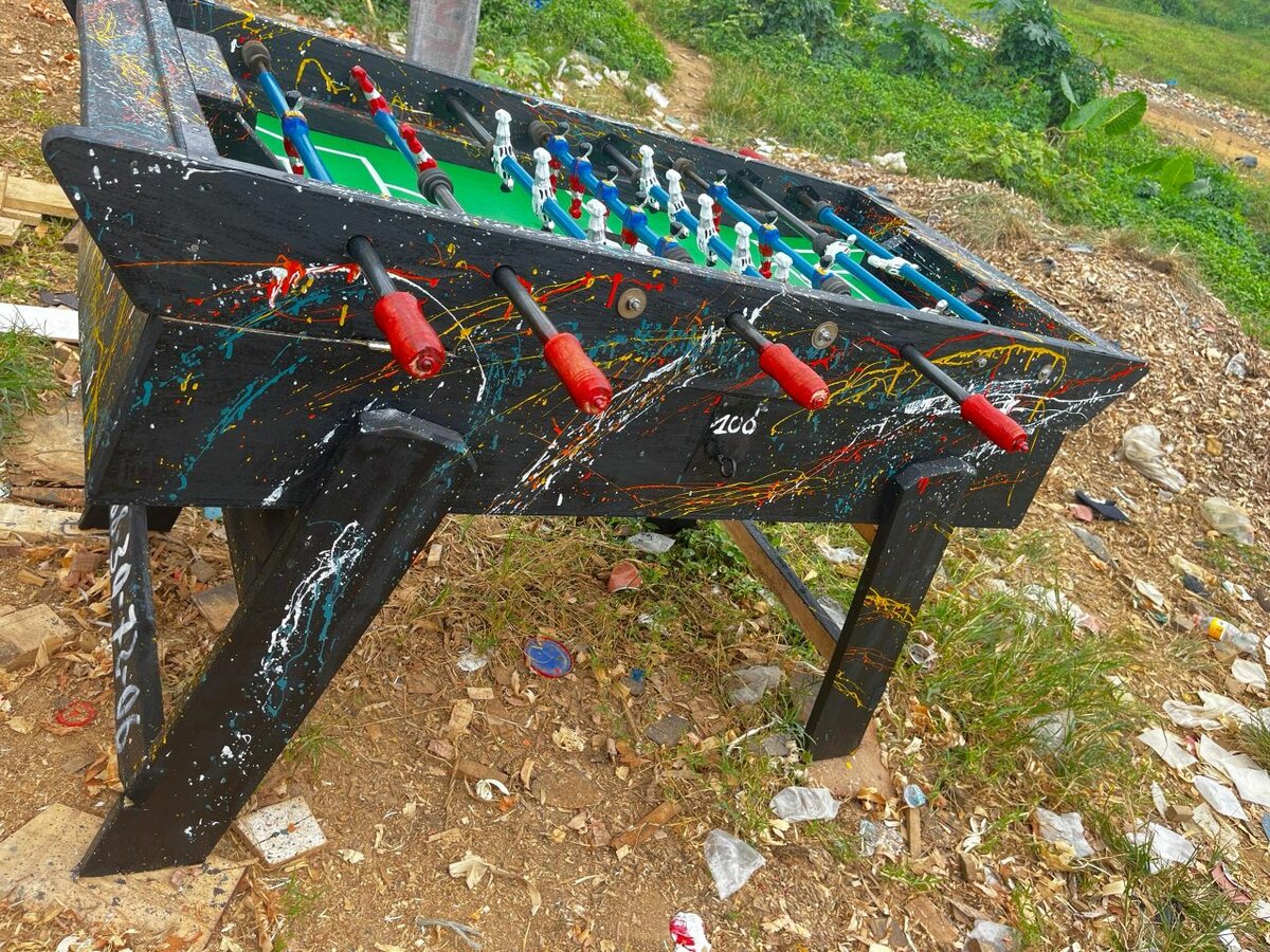 Plongez dans l'amusement avec cette table de baby-foot unique et colorée ! Parfaite pour les soirées entre amis ou en famille, elle offre une excellente jouabilité et un design artistique vibrant. Avec ses barres solides et ses poignées faciles à saisir, ce baby-foot devient le centre d'attention dans n'importe quel espace de loisirs. Un choix idéal pour les passionnés de football et les amateurs de jeux de société qui souhaitent ajouter une touche d'originalité à leur intérieur.