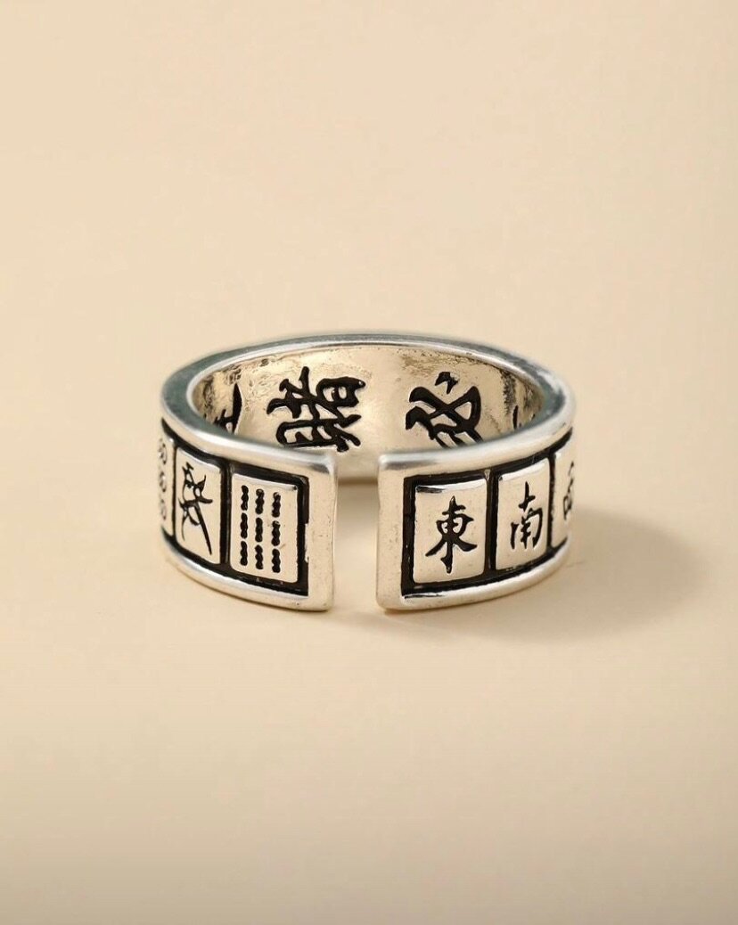 Ajoutez une touche de mystère à votre look avec cette bague ajustable en argent ornée de motifs tribaux. Parfaite pour tous les jours ou occasions spéciales. Idéale comme cadeau unique.