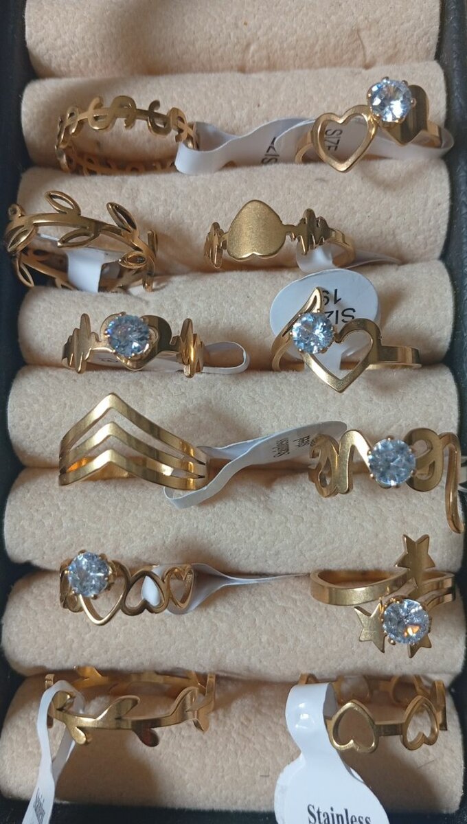 Découvrez notre collection de bagues en acier inoxydable dorées, ornées de détails élégants et de pierres scintillantes. Parfaites pour chaque occasion, elles ajoutent une touche de raffinement à n'importe quelle tenue. Idéales pour un usage quotidien ou comme cadeau spécial.