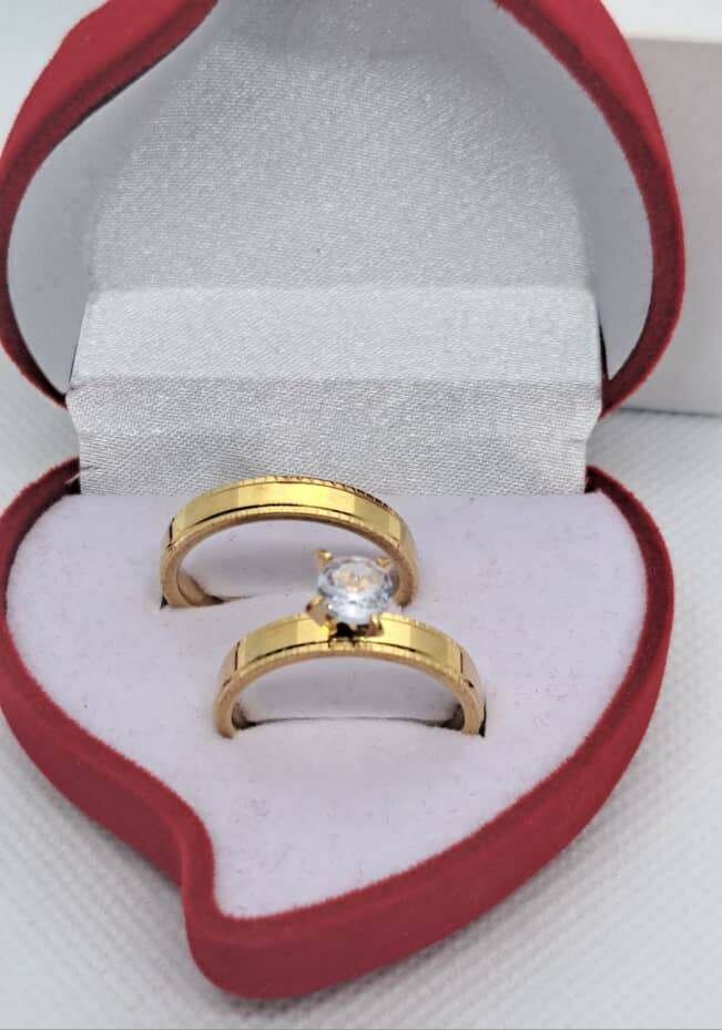 Ensemble élégant de bague et alliance en or avec pierre scintillante. Idéal pour mariage ou fiançailles. Taille 17. 18.19.20