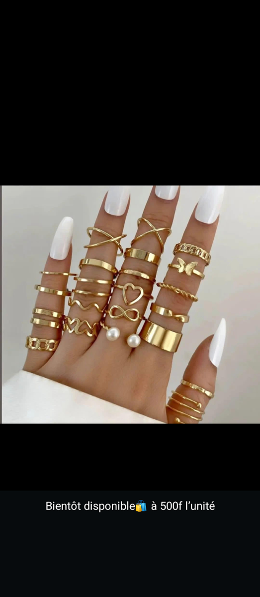 Découvrez notre ensemble de bagues fantaisie dorées. Parfaites pour ajouter une touche élégante à n'importe quelle tenue. Elles s'adaptent à tous les styles et sont idéales pour un usage quotidien ou pour une occasion spéciale. Offrez à vos doigts un look raffiné!