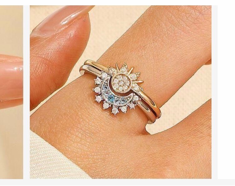 Étincelante bague double, ornée de zircons en forme de lune et d'étoile, parfaite pour sublimer votre style quotidien ou vos occasions spéciales.