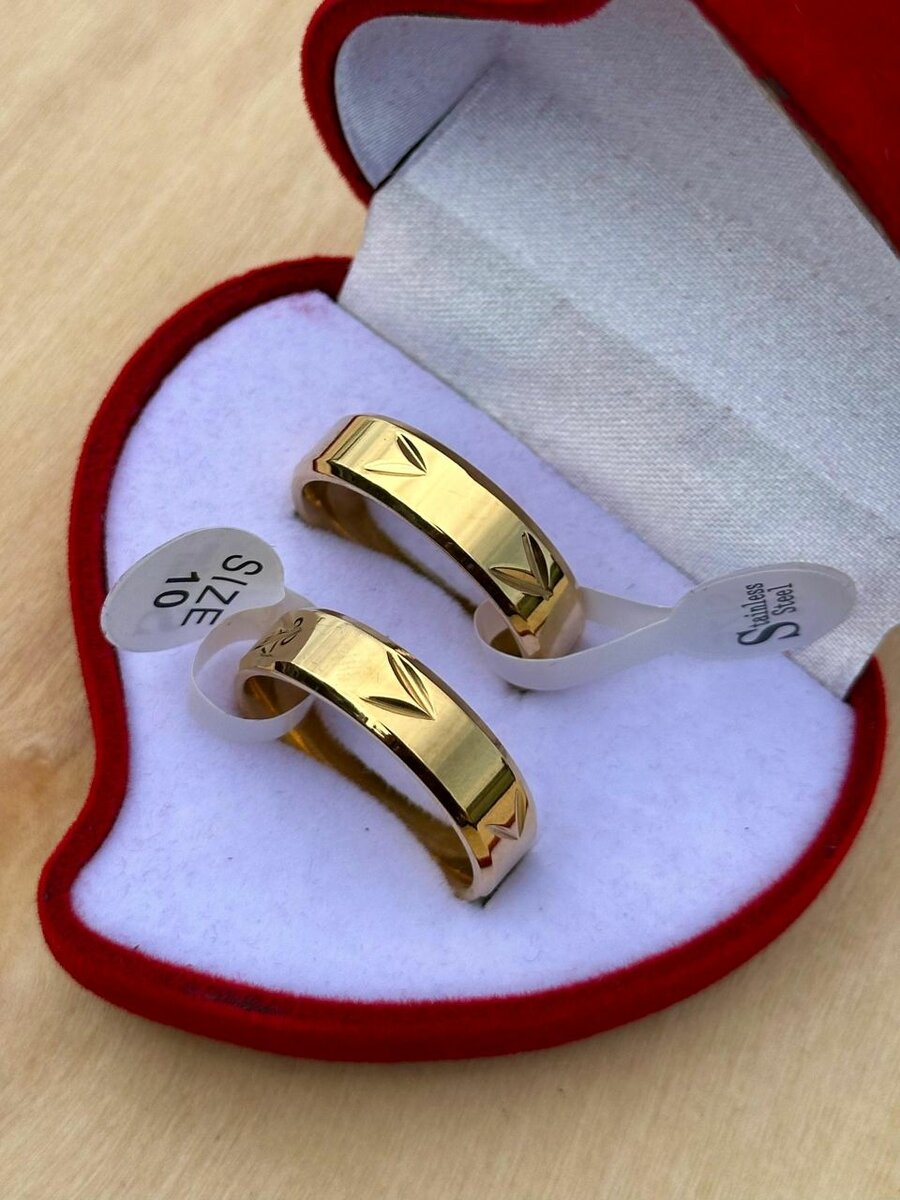 Découvrez notre paire de bagues en or, présentée dans un écrin en velours rouge luxueux. Ces bagues, au design raffiné et moderne, ajouteront une touche d'élégance à n'importe quel look. Parfaites pour des occasions spéciales, elles feront également un cadeau mémorable. Idéal pour les mariages, anniversaires ou autres célébrations importantes.