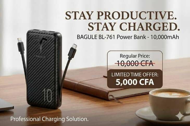 Optez pour le BAGULE BL-761, une batterie externe performante de 10,000mAh. Restez chargé lors de vos déplacements grâce à ses câbles intégrés et son design compact. Idéal pour les professionnels et les voyageurs.