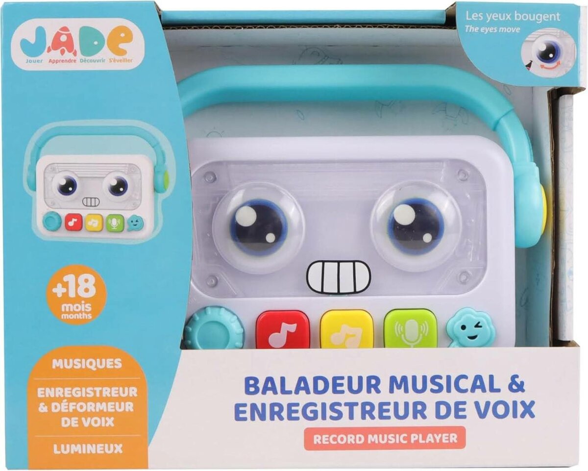 Découvrez le baladeur musical Jade, un jouet interactif idéal pour les enfants de 18 mois et plus. Enregistrez et déformez des voix pour des heures d'amusement. Ses yeux mobiles fascinants captivent les petits explorateurs. Un cadeau parfait pour stimuler la créativité et l'imagination!