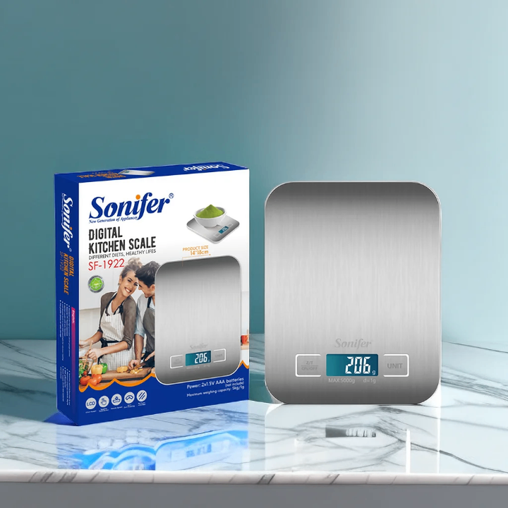 Découvrez la précision avec la balance de cuisine Sonifer. Capacité de pesée jusqu'à 5 kg, idéale pour vos besoins culinaires. Écran LCD rétroéclairé pour une lecture facile. Design élégant en acier inoxydable qui s'intègre parfaitement à toute cuisine moderne. Simple, rapide et précis, un outil indispensable pour chaque cuisinier passionné.