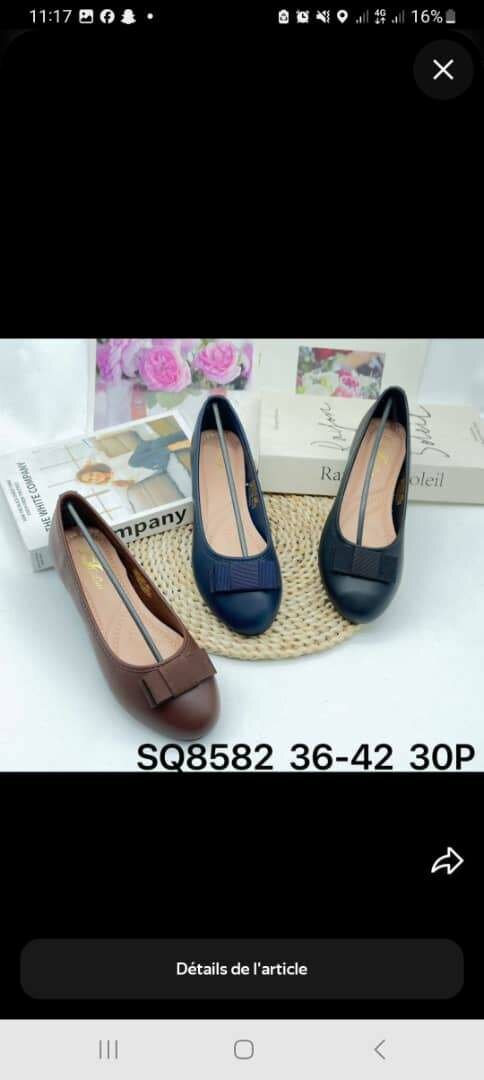Découvrez nos ballerines élégantes pour femme, disponibles en plusieurs couleurs. Confortables et chic, idéales pour le travail ou les sorties décontractées. Disponibles en tailles 36 à 42.