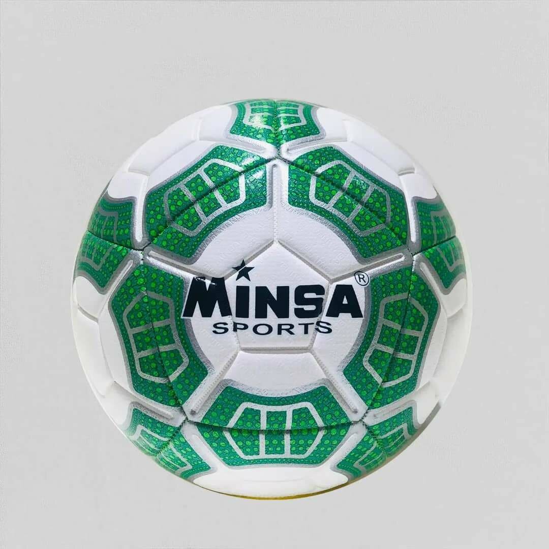 Découvrez le ballon de football Minsa, idéal pour vos matchs et entraînements. Conçu avec des matériaux durables, il offre une excellente performance et un design moderne avec des motifs verts. Parfait pour les amateurs et les professionnels.