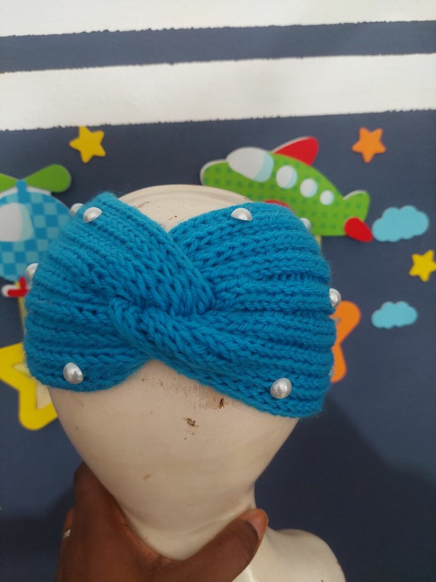 Ajoutez une touche d'élégance à votre tenue avec ce bandeau en laine bleu. Idéal pour rester au chaud tout en restant stylée, il est orné de perles pour une touche chic. Parfait pour les sorties hivernales ou les journées fraîches, ce bandeau combine confort et style. Un accessoire indispensable pour votre garde-robe!