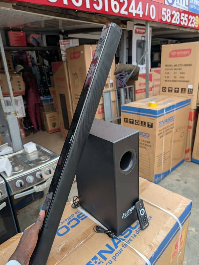 Profitez d'une expérience sonore immersive avec cette barre de son Altop. Son design élégant et son caisson de basses offrent un son clair et profond, idéal pour vos films et musiques préférés. Facile à installer, elle s'intègre parfaitement à votre intérieur. Parfaite pour les amateurs de home cinéma et les mélomanes.