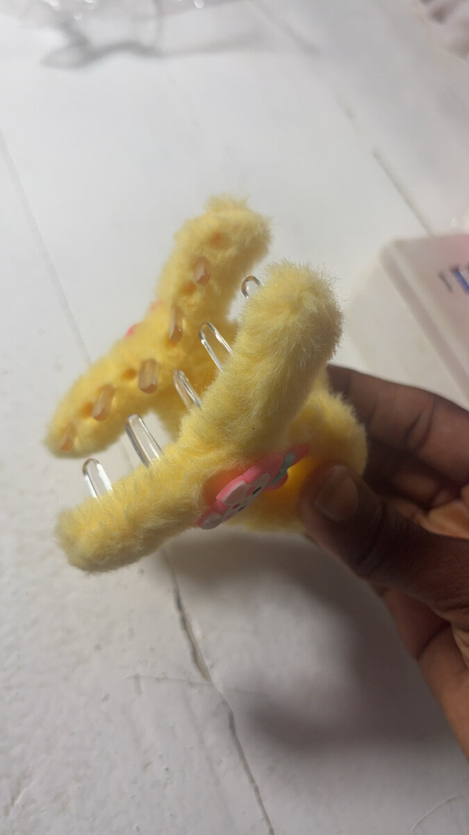 Cette barrette à cheveux en peluche jaune est parfaite pour ajouter une touche douce et charmante à votre coiffure. Idéale pour les enfants et les jeunes adultes, elle allie fonctionnalité et style. Fabriquée avec des matériaux de qualité, elle maintient les cheveux en place tout en offrant un confort maximal. Portez-la pour égayer votre journée ou complétez un look décontracté et amusant.