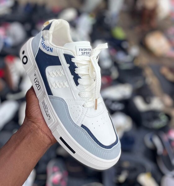 Basket blanche/bleu marine épaisse : sneakers pour homme au design sportif, avec touche bleu marine tendance. État neuf.