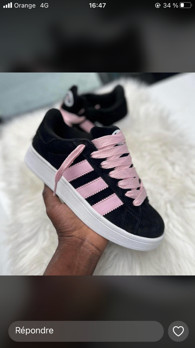 baskets élégantes avec un design noir et des lacets roses. Idéales pour un look tendance et confortable, elles s'adaptent parfaitement à un style décontracté.