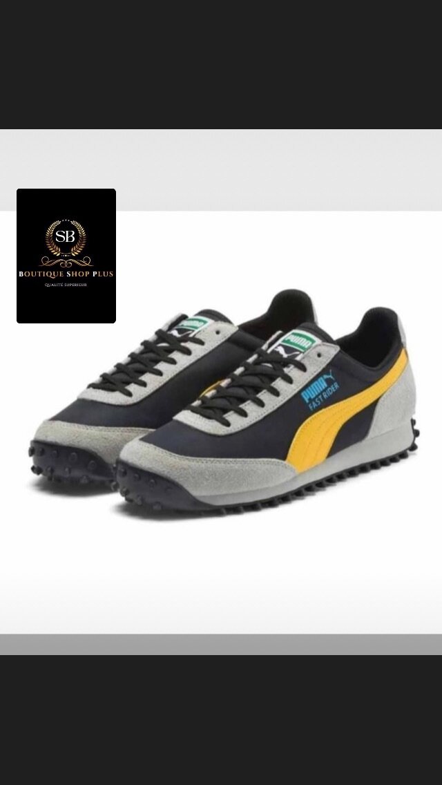 Chaussures Puma noires et jaunes pour hommes