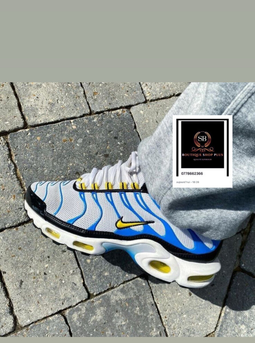 Découvrez les emblématiques baskets Air Max TN en bleu et blanc. Conçues pour un confort durable et un style inégalé, elles sont parfaites pour le sport et la ville. Idéales pour ceux qui cherchent un look dynamique et une performance optimale à chaque pas.