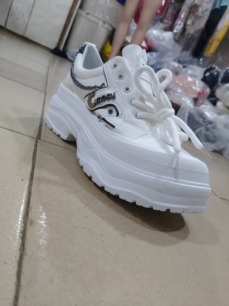 Découvrez ces baskets blanches à plateforme, alliant confort et style. Parfaites pour dynamiser votre tenue, elles se distinguent par leur design moderne et leur semelle robuste. Idéales pour une utilisation quotidienne ou pour des sorties décontractées.