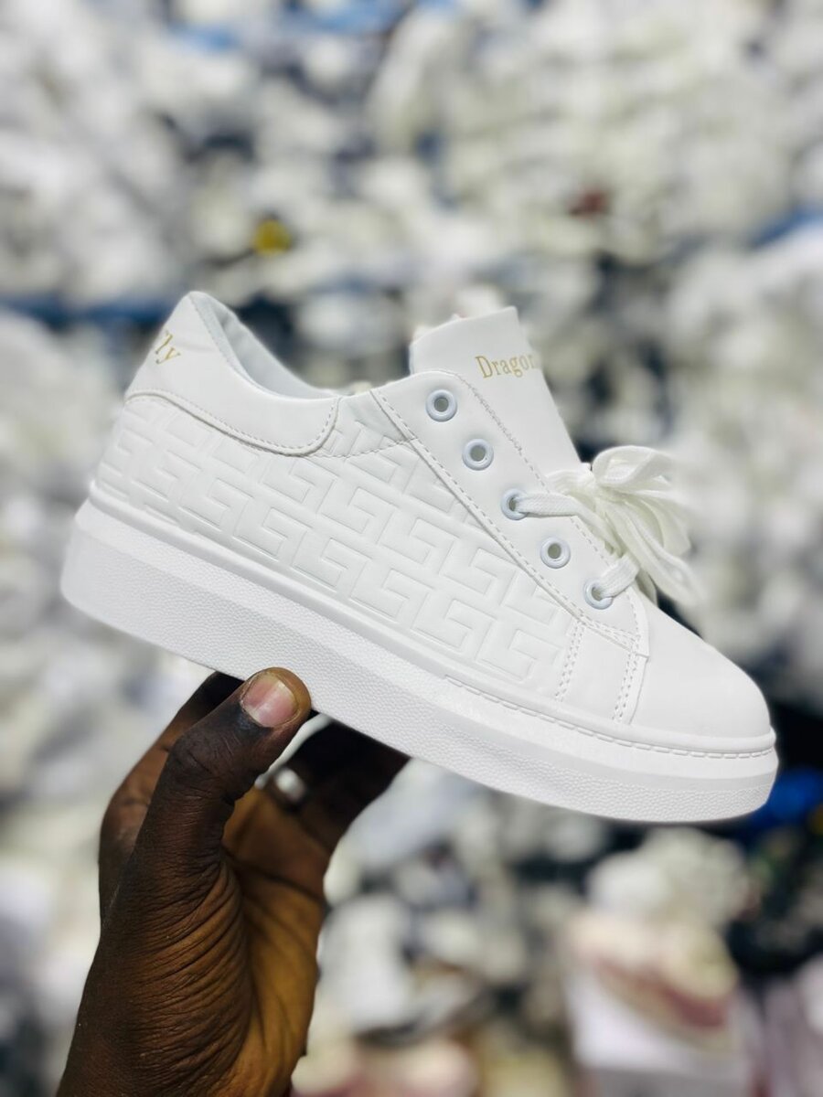 Découvrez ces baskets blanches au design raffiné. Idéales pour un style casual ou sportif, elles offrent confort et support grâce à leur semelle robuste. Parfaites pour un usage quotidien!