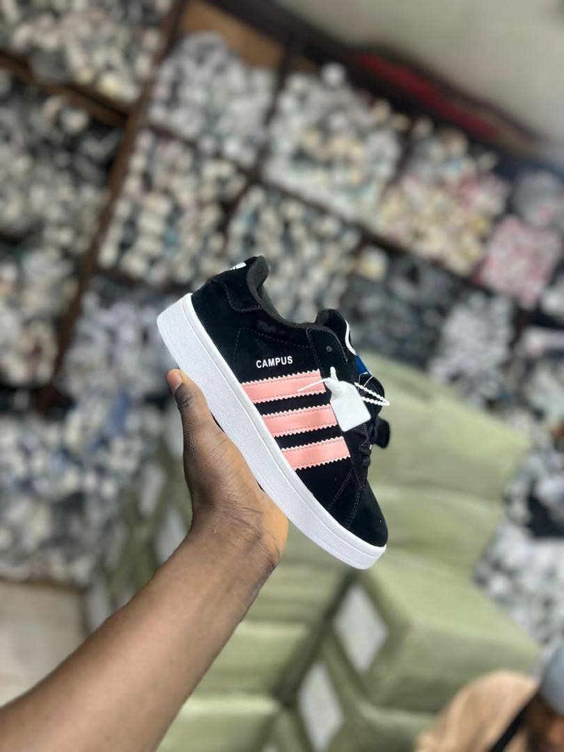 Optez pour le style moderne avec ces baskets Campus en suede noir et rayures roses. Confort et élégance réunis pour vos looks quotidiens. Idéales pour toutes vos sorties urbaines.